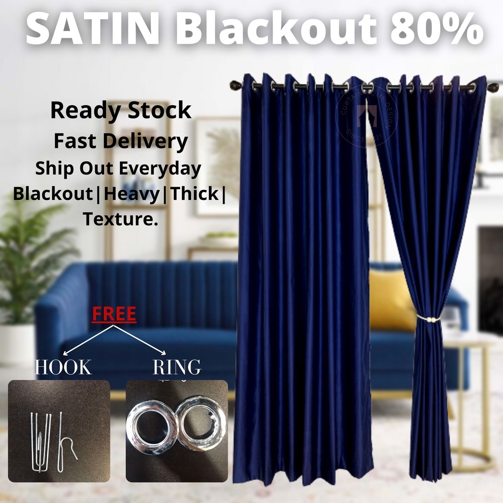 A11 Ready Made Curtain Siap Jahit Langsir Langsir Raya Kain Blackout 85 Free Hook Cangkuk Warna Dark Blue Shopee Malaysia