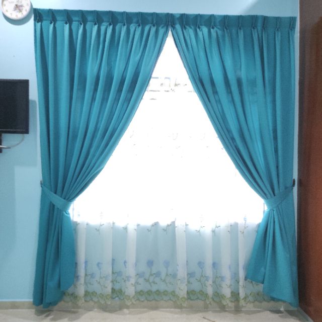 Langsir Biru Muda Curtains Plain Turquoise Shopee Malaysia