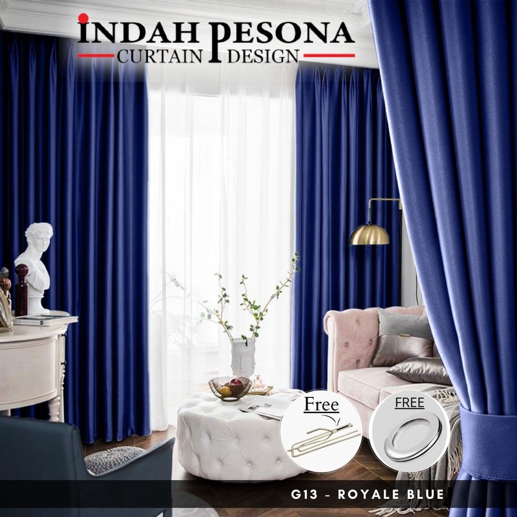 G13 Ready Made Curtain Siap Jahit Langsir Langsir Raya Kain Tebal Sliding Door Windows Room Door Free Hook Cangkuk Warna Biru Dark Blue Lazada